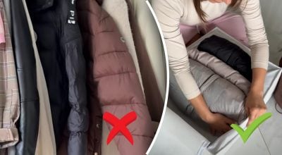 Aby kurtki nie zajmowały połowy garderoby, można zastosować ciekawy life hack. Link skopiowany Jak przechowywać kurtki zimowe / Kolaż: My, foto: zrzuty